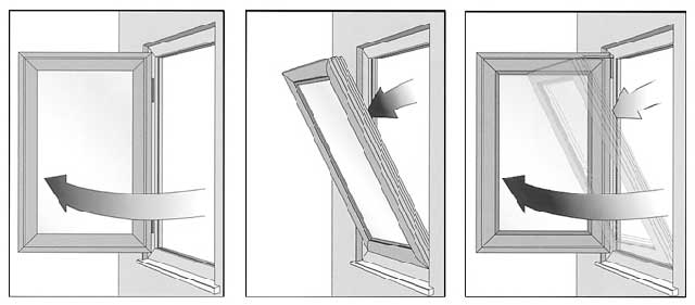 Окна ПВХ открываются несколькими способами. Различают следующие механизмы открывания: